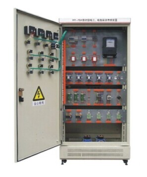 該裝置按標(biāo)準(zhǔn)電氣控制柜設(shè)計(jì)制造規(guī)格,充分利用雙面位置,柜內(nèi)裝有完成各種照明電路所需的單相電度表、日光燈、單聯(lián)開(kāi)關(guān)、插座、感應(yīng)開(kāi)關(guān)、漏電開(kāi)關(guān)等,以及電氣控制所需要的多種低壓電器,如漏電斷路器、熔斷器、電流互感器、交流接觸器、時(shí)間繼電器、熱繼電器、中間繼電器、行程開(kāi)關(guān)、按鈕、信號(hào)燈、轉(zhuǎn)換開(kāi)關(guān)、電壓表、電流表、功率表及電度表等,為了延長(zhǎng)電器使用壽命,各電器的接點(diǎn)都與接線端子相連,再由接線端子與被控制電氣連接。