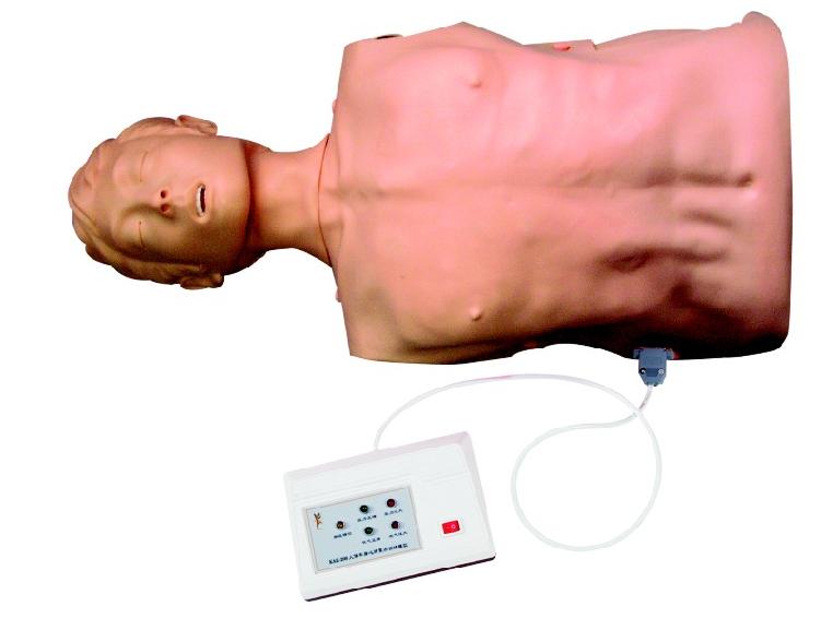 心肺復(fù)蘇,國際代稱CPR。在生活中,健康人由于心臟驟停(如觸電、溺水、高空作業(yè)事故、交通事故、旅游意外、心臟疾病、心肌梗塞、自然災(zāi)害、意外事故等所造成的心臟驟停),而必須采取胸外按壓、人工口鼻呼吸、心內(nèi)注射、氣道放開等搶救過程。使病人追短時(shí)間內(nèi)得救。在搶救過程中胸外按壓位置,按壓強(qiáng)度是否正確,人工呼吸吹入的吹氣量是否足夠等規(guī)范動(dòng)作是否正確,是搶救病人是否成功的關(guān)健。因此,在系列搶救過程中,必須要掌握心肺復(fù)蘇技術(shù)。模擬胸外按壓、人工呼吸、心內(nèi)注射、頸動(dòng)脈模擬搏動(dòng)、瞳孔由一只散大與一只縮小的比較認(rèn)識(shí),達(dá)到掌握操作訓(xùn)練心肺復(fù)蘇術(shù)的基本要求。對(duì)操作正確與否,有光電信號(hào)顯示、數(shù)碼顯示等功能,它是訓(xùn)練搶救人員進(jìn)行心肺急救技術(shù)訓(xùn)練的要求的模擬機(jī)。