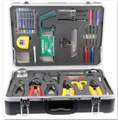 工具箱采用圓弧型材和鎂鋁合金外殼或ABS材料,所有工具均為國際標準施工工具,符合中國國家布線施工標準。每個工具都有標簽對應。