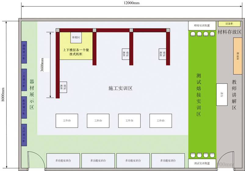 每獨(dú)立實(shí)訓(xùn)墻體安裝2個(gè)墻面,每個(gè)墻面滿足2-3名學(xué)生同時(shí)實(shí)訓(xùn),每?jī)蓚(gè)墻體形成的區(qū)間能滿足4-6人實(shí)訓(xùn)。
