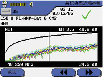 近端串?dāng)_(NEXT)及遠(yuǎn)端串?dāng)_(ELFEXT)測(cè)試用于自動(dòng)測(cè)量在電纜近端和遠(yuǎn)端的串?dāng)_。串?dāng)_量過(guò)高會(huì)導(dǎo)致過(guò)多的傳輸錯(cuò)誤、數(shù)據(jù)丟失和其它問(wèn)題,致使網(wǎng)絡(luò)系統(tǒng)變慢。