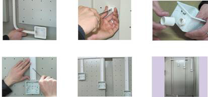 每座實(shí)訓(xùn)單體墻有對(duì)稱(chēng)的兩個(gè)墻面,每個(gè)墻面布有2道橫向和縱向凹槽,凹槽深度50mm,寬度100mm,下部橫向凹槽距離地面300mm。 鋼面板表面設(shè)有60X60毫米的安裝孔用來(lái)安裝各種線管、插座、線槽等,實(shí)訓(xùn)過(guò)程只需要采用螺絲安裝保證無(wú)塵操作。模擬墻外部平整美觀,表面看不見(jiàn)墻體安裝螺絲或鉚釘。